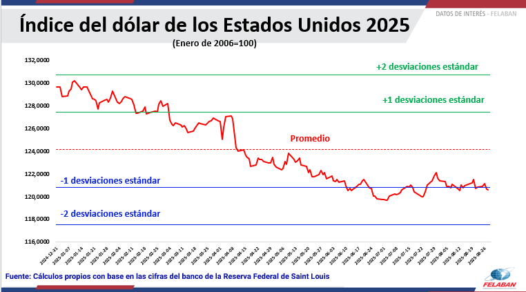 La agencia de noticias económicas Reuters reportó el pasado 3 de septiembre que una encuesta hecha entre operadores del mercado FX, que la tendencia del dólar durante lo que resta del año 2025 será de debilitamiento. Posiciones de tesorería actuales de diversas entidades parecen confirmar dicha posibilidad. En ese contexto el banco estadounidense Barclays recomienda … Leer más